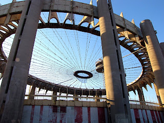 One of my favorite discoveries in Queens is the Queens Museum of Art in Flushing Meadow Park. I remember the park vividly from my childhood visits to the Worlds Fair, but having lived my entire life in Manhattan I never happened to set foot in the park again until I moved to Queens five years ago. The museum, situated in the middle of the park, looks onto the famous plaza which holds the amazing and massive globe sculpture, truly magnificent up close. There are all sorts of strange architectural fair-ground leftovers dotting the park that are fun to explore as you walk around.